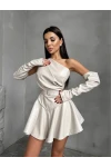Deri Tokalı Gizli Fermuarlı Kol Detaylar Mini Şortlu Elbise