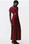 Drape Detaylı Akseuarlı Elbise Kahve
