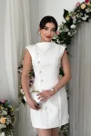 Düğme Detaylı Elbise Beyaz ·Kumaş Bilgisi : Atlas