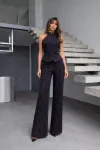 Fermuar Detay Çizgili Takım Siyah