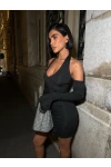 Full Taş Halter Yaka Mini Elbise