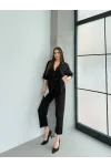 İthal Atlas Kumaş Kruvaze Yaka Tulum Siyah
