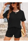 Kadın Kısa Kollu Bisiklet Yaka Alt Ve üst Waffle Ikili Takım