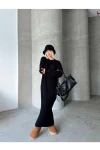 Kadın Siyah Bisiklet Yaka Saç Örgülü Kadın Triko Midi Elbise
