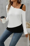 Kadın Tek Omuzu Açık Askılı çift Renkli Uzun Kollu Viskon Bluz