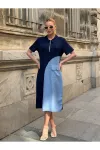 Lacivert Fermuar Detay Modal ve Tensel Kumaş Elbise