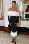 Modal Kumaş Kürk Detaylı Maxi Elbise