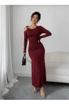 Modal Kumaş Metal Aksesuar Detay Drapeli Maxi Boy Elbise