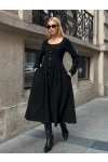 Zarif hatları, akışkan kumaşı ve zamansız tasarımıyla günlük şıklığı yeniden tanımlayan Ottoman Kumaş Düğme Detay Elbise, gardırobunuzun vazgeçilmez parçalarından biri olmaya aday. Hem rahat hem de şık görünmek isteyenler için ideal olan bu elbise; kare yakası, uzun kolları ve belden aşağı doğru dökülen kloş etek formuyla modern ve sofistike bir duruş sunar.