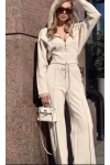 Oysho Kapşonlu Dantel Güpürlü Takım Ekru