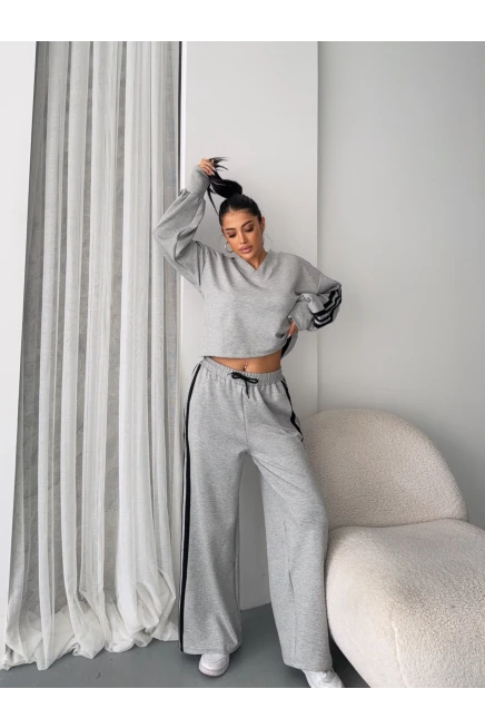 Üç İplik Şardonlu Yanları Şerit Takım Gri