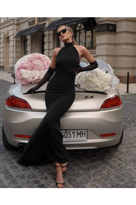 Sırt Dekolteli Eldivenli Sandy Kumaş Elbise