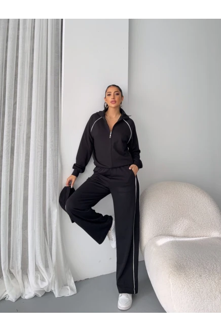 Modal Kumaş Şerit Detaylı Takım Siyah