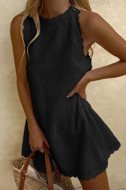 Lazer Kesim Keten Kumaş Tunik Elbise