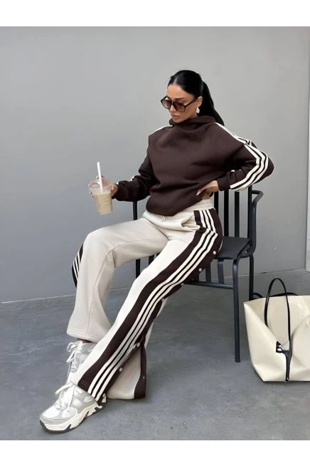 Skuba Kumaş Yanları Çıtçıtlı Takım Kahve