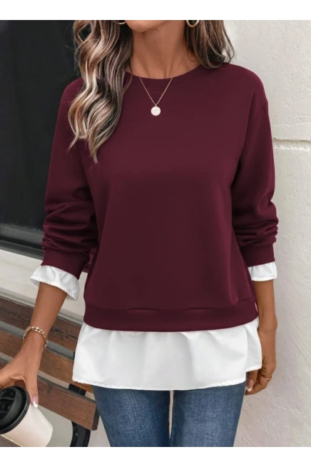 Kadın Uzun Kollu Bisiklet Yaka Viskon Iki Iplik Ve Etek Ucu Trikoton Bluz