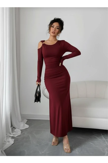 Modal Kumaş Metal Aksesuar Detay Drapeli Maxi Boy Elbise