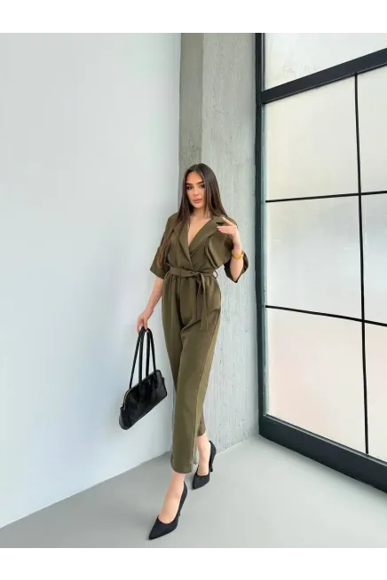 İthal Atlas Kumaş Kruvaze Yaka Tulum Haki