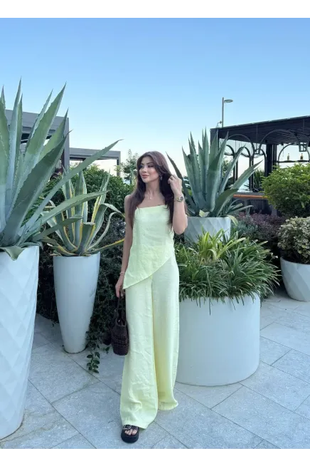 Modal Kumaş Asimetreik Kesim Alt Üst Takım Sarı