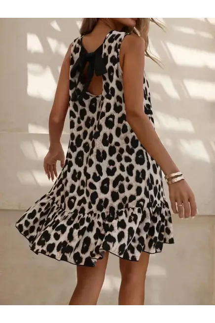 Kadın Kolsuz Sırttan Bağlamalı Fırfırlı Leopar Desenli Süprem Elbise , 31246