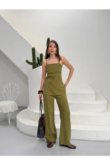 Modal Kumaş Askılı Bluz Alt Üst Takım Haki