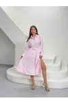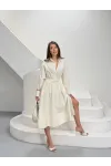 Yırtmaç Detay Etek ve Gömlek Alt Üst Takım Ekru Terrycotton Kumaş