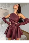 Deri Tokalı Gizli Fermuarlı Kol Detaylar Mini Şortlu Elbise