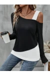 Kadın Tek Omuzu Açık Askılı çift Renkli Uzun Kollu Viskon Bluz
