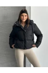 Kapşonlu Yaka Bağcıklı Micro Şişme Mont