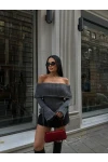 Kol Detay Madonna Yaka Triko Bluz Gri