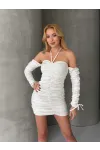 Modal Kumaş Drape Detaylı Mini Elbise Beyaz