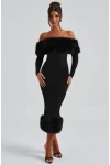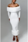 Modal Kumaş Kürk Detaylı Maxi Elbise