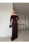 Modal Kumaş Metal Aksesuar Detaylı Maxi Boy Elbise