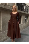 Kullanışlı yan cepleri ve özenle seçilmiş büyük düğme detaylarıyla hem estetik hem de fonksiyonel bir deneyim yaşatır. Kahverenginin sıcak tonu ise her mevsime ve her ortama uyum sağlar.