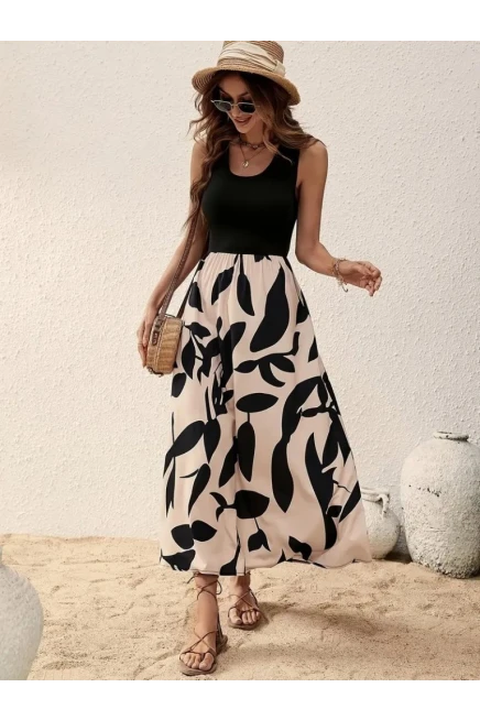 Yuvarlak Yaka Viskon Alt Desenli Süprem Elbise
