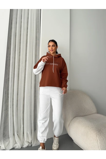 Üç İplik Kapşonlu Basklılı Takım Gri