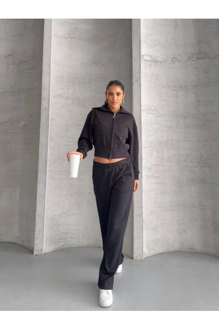 Modal Kumaş Crop Üst Eşofman Takım Siyah