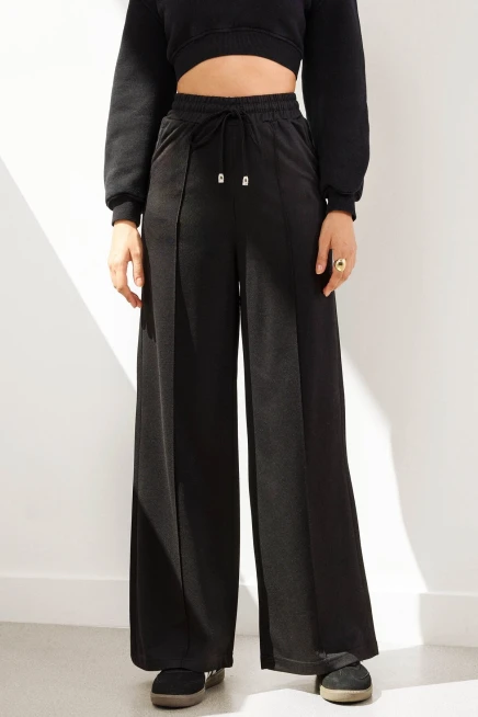 Çıma Detay Bol Paça Eşofman Altı Siyah