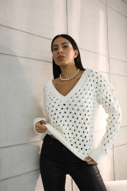 V Yaka Ajurlu Triko Kazak