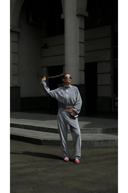 Fransız Kadife Eşofman Takım Gri