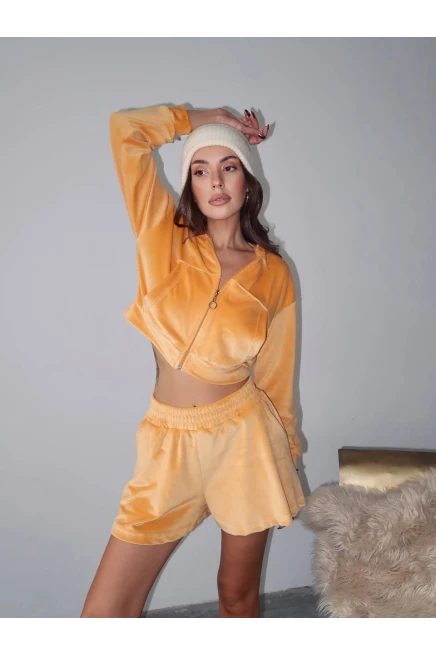 Fransız Kadife Şortlu Takım Turuncu
