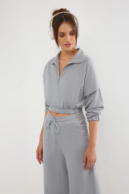 Beli Lastikli İki İplik Bol Paça Alt Üst Takım Gri