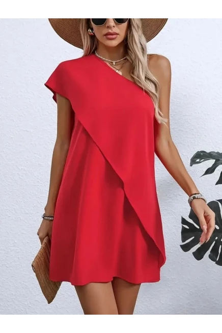 Asimetrik Kesim Sandy Kumaş Elbise SİYAH