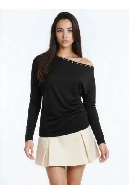 Kadın Kayık Yaka Yarasa Kol Yakası Troklu Lycralı Penye Bluz