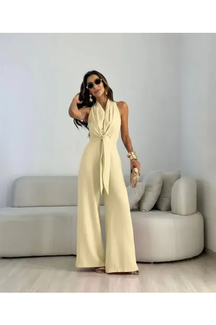 İthal Hürrem Kumaş Bağlama Detay Tulum Sarı