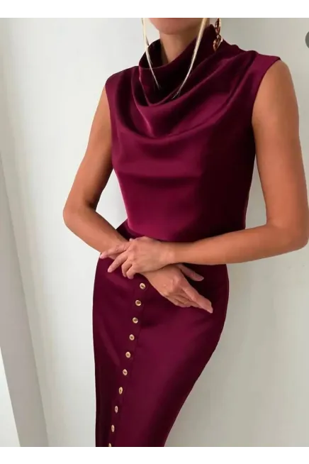 Saten Kumaş Özel İşleme Düğme Detaylı Takım
