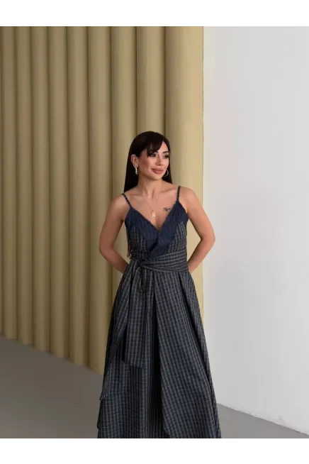 Kadın Ekose Dantelli Sırt Gipeli Elbise Yeşil