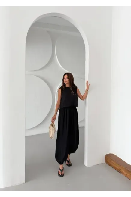 Modal Kumaş Kolsuz Bluz Şalvar Pantalon Alt Üst Takım Siyah