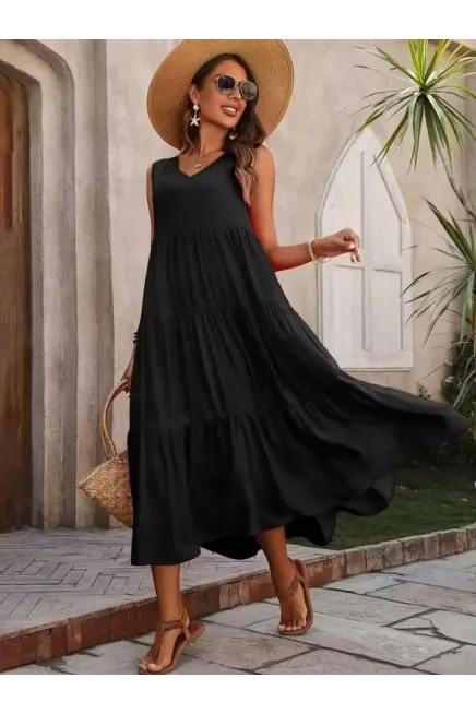 Kadın Askılı V Yakalı Uzun Dokuma Viskon Elbise , 33041