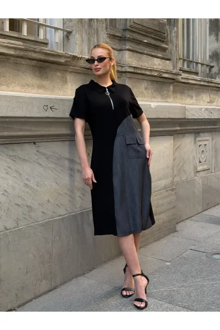 Siyah Fermuar Detay Modal ve Tensel Kumaş Elbise